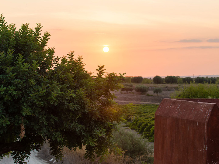 La tenuta si estende su dolci colline, dove le linee ordinate dei vigneti disegnano il paesaggio alternandosi a giovani mandorleti e a maestosi carrubi secolari. Ogni elemento contribuisce a creare un equilibrio naturale di grande fascino, che accompagna il visitatore in un’esperienza immersiva tra profumi, colori e silenzi della campagna siciliana.
